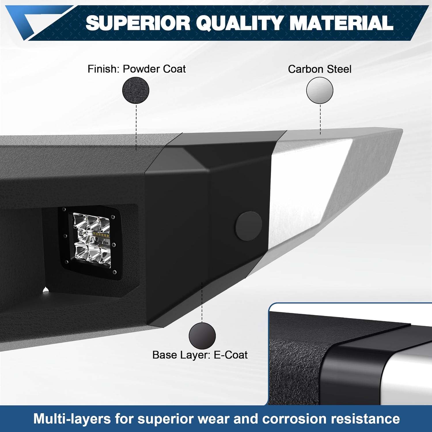Built from high-quality carbon steel, this front bumper features: