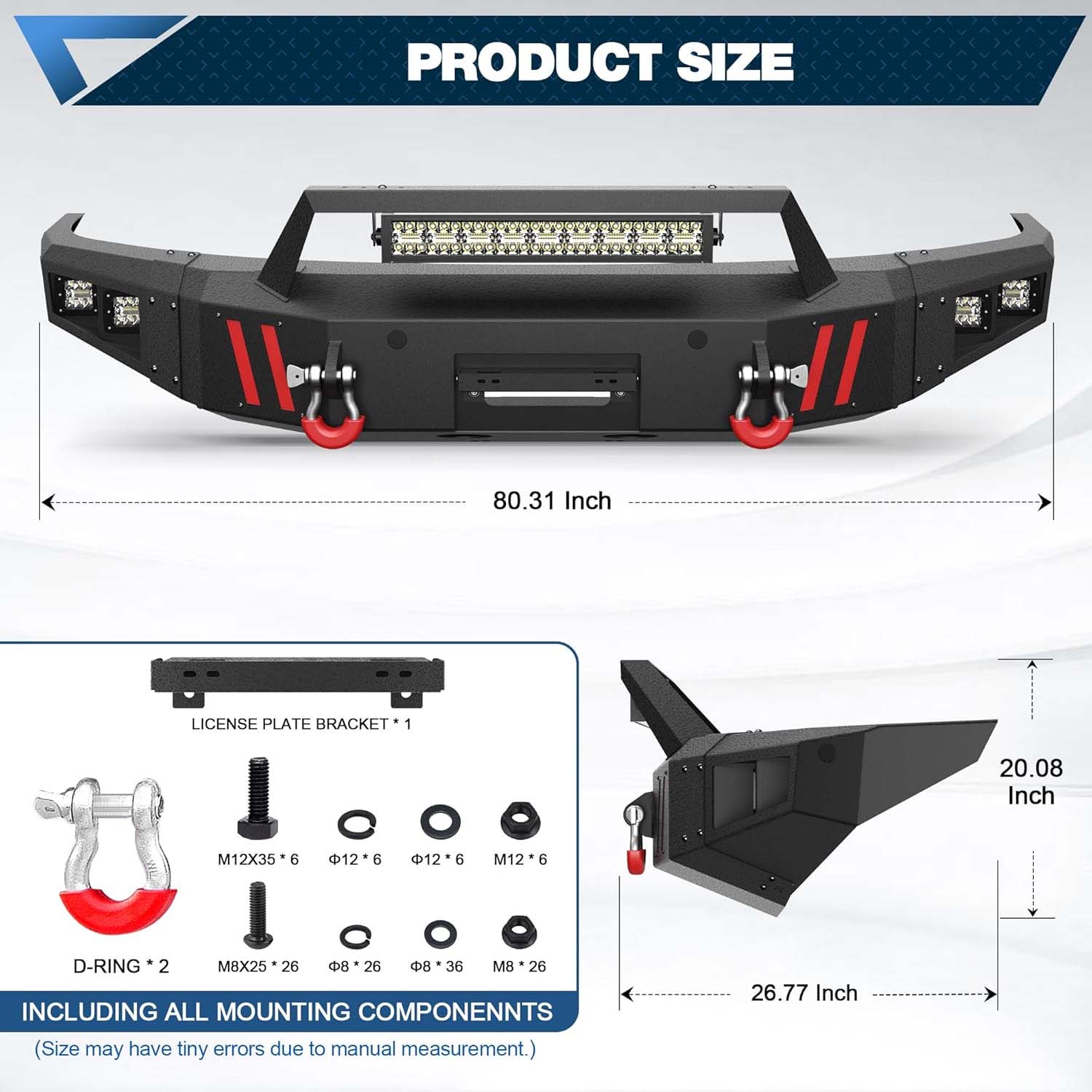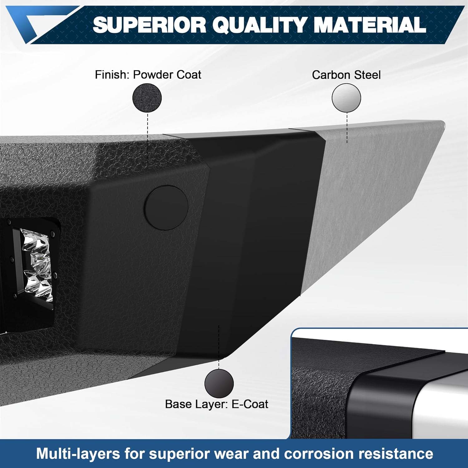 Constructed from high-quality carbon steel and finished with a textured black powder coat, this bumper is engineered for long-lasting strength in any climate or terrain. The advanced E-coating process provides exceptional resistance to rust, corrosion, and road debris—perfect for snow, salt, mud, or rough off-road trails.